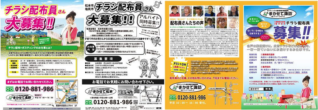各地域で配布員さんの募集チラシを配っています。