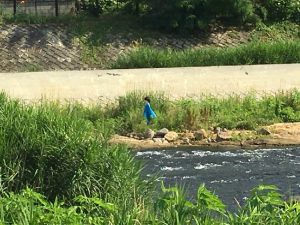 川沿いを歩いていたら、対岸に子供らしき姿が見えたんです。