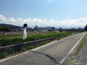 川沿いに車を走らせてみたら、あっちにもこっちにも人型がある。