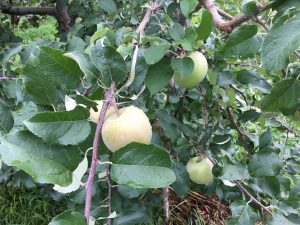 リンゴ農園がたくさんあって、まだ青い、小さいリンゴを見つけました。