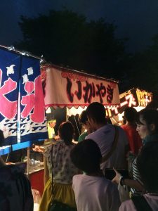 各企業が協賛してスターマインが打ち上げられます。今年は「松本山雅」がスポンサーになった緑色一色の花火も上がりました。地元の企業が沢山協賛してくれて企業の紹介がアナウンスされます。