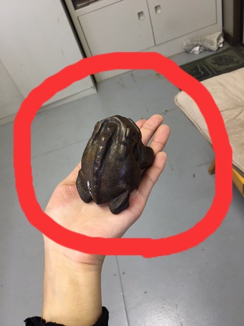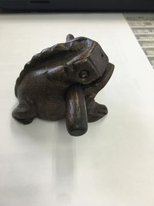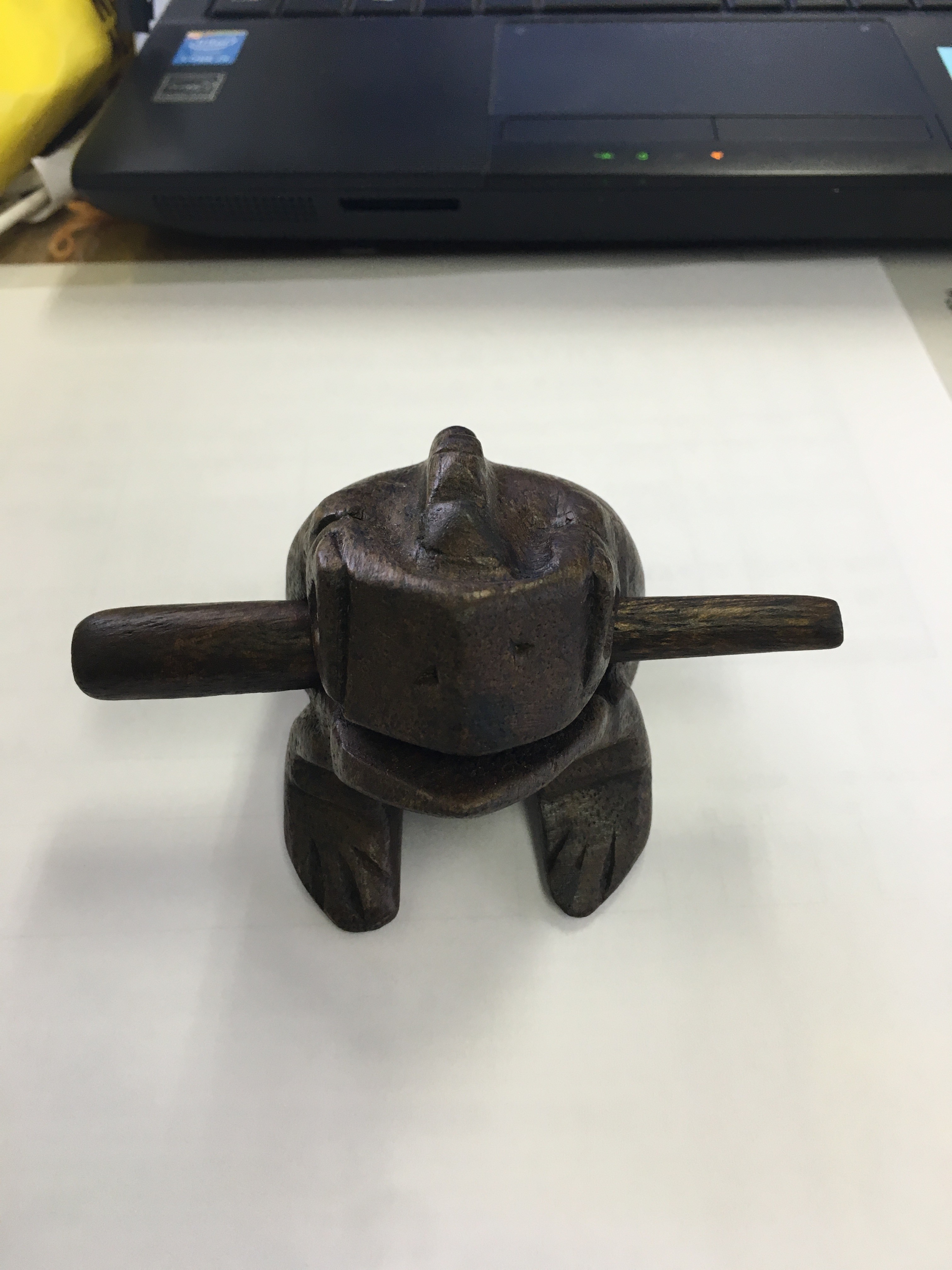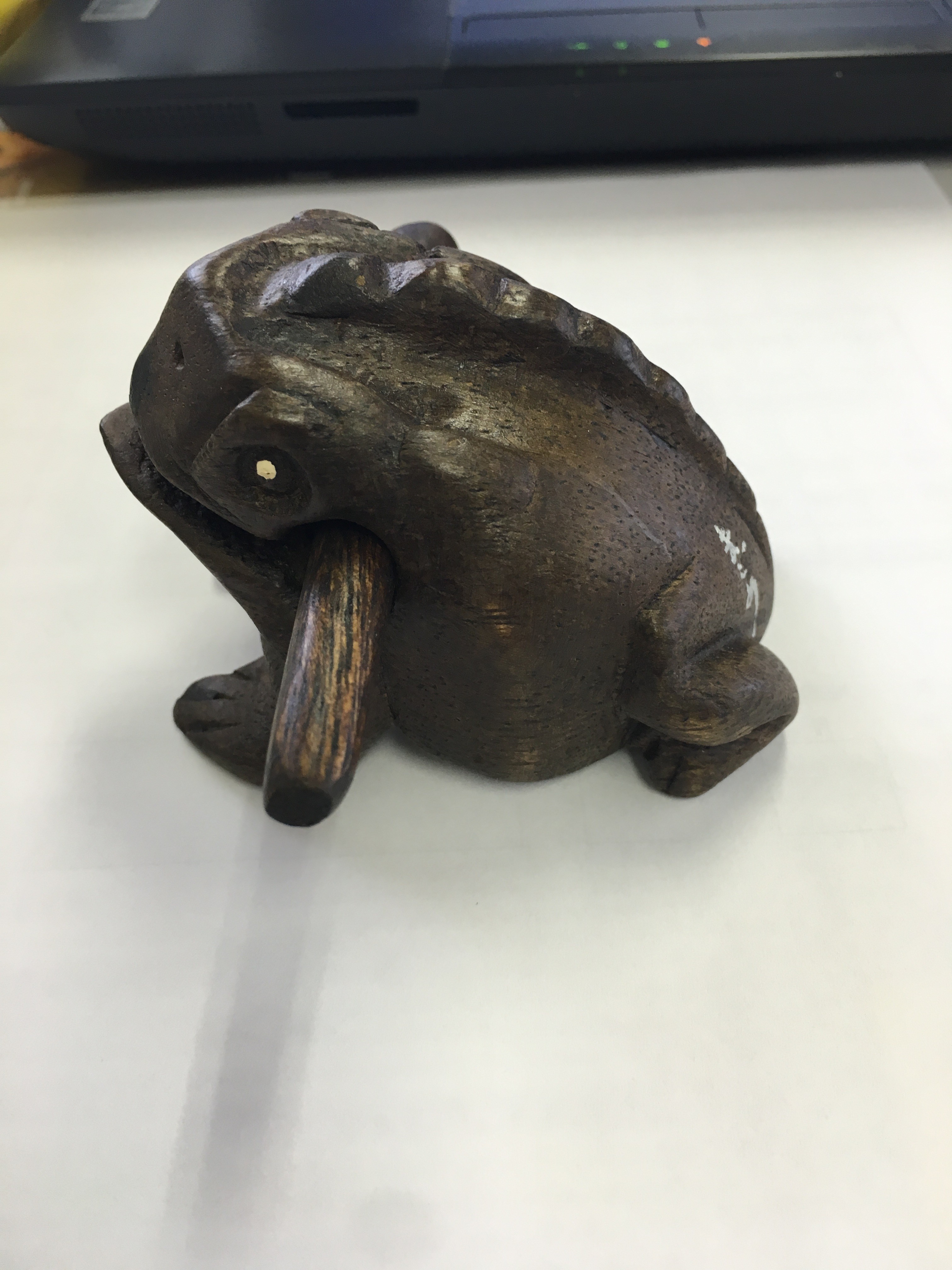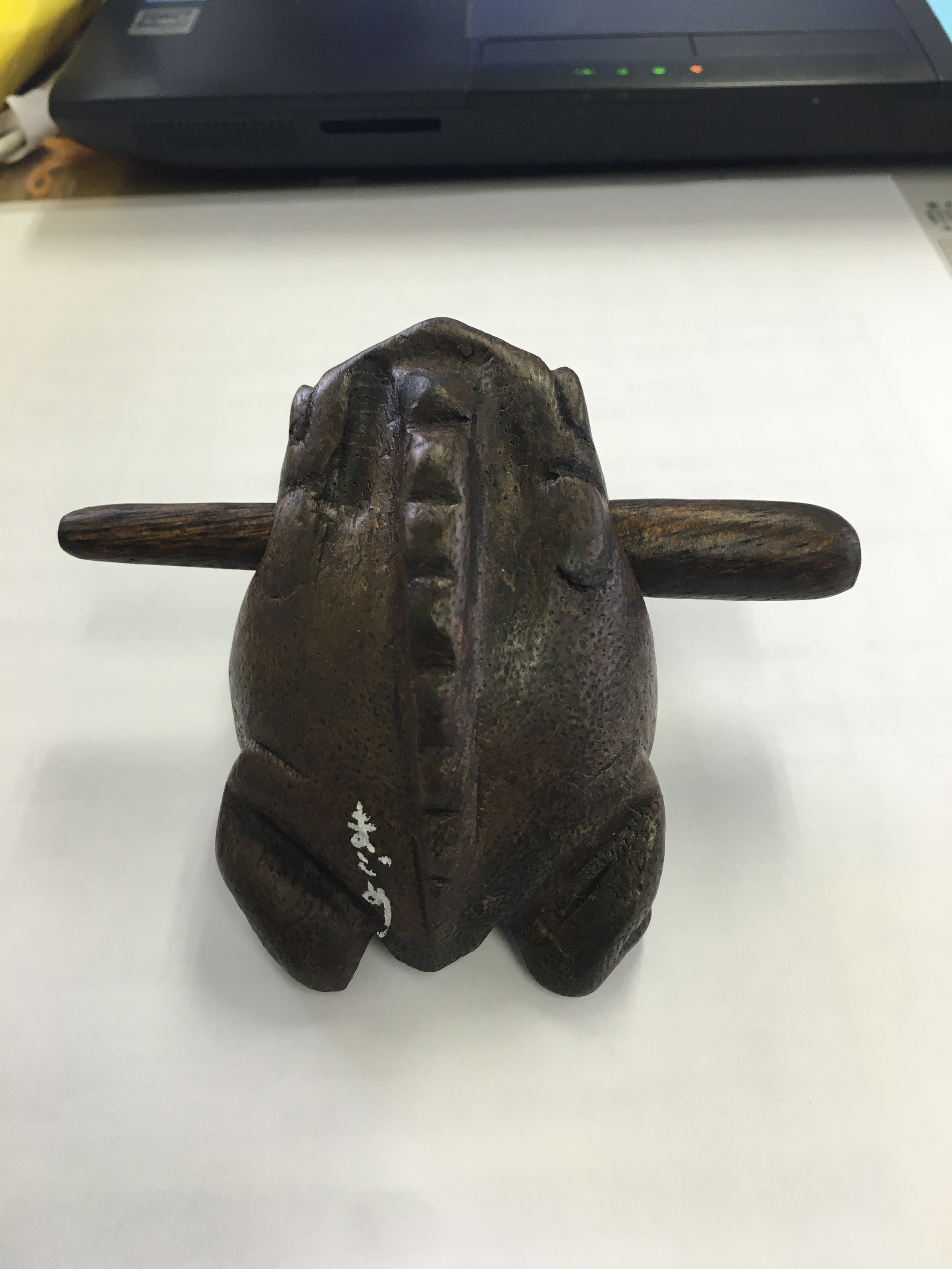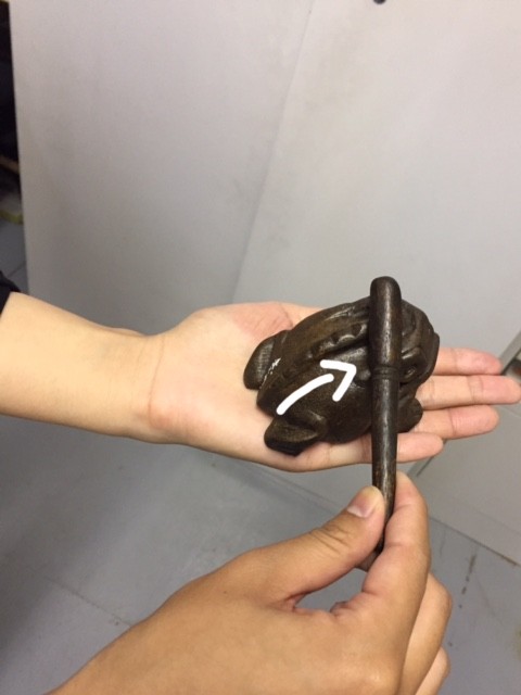 さっきのカエルの鳴き声はこのカエルの置物の背面をなぞって出してるそう!!