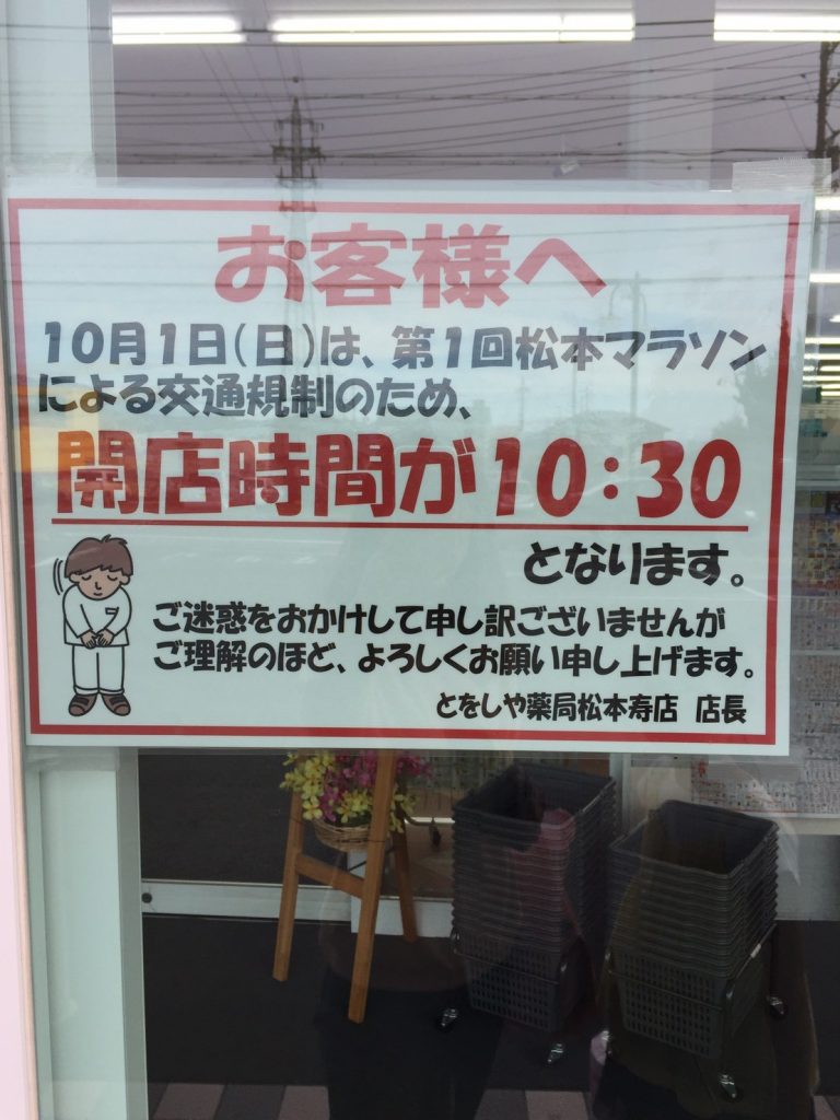 あっ、そうか「第1回松本マラソン」が10月1日に開催されるんだ!!!!!と気がつきました。