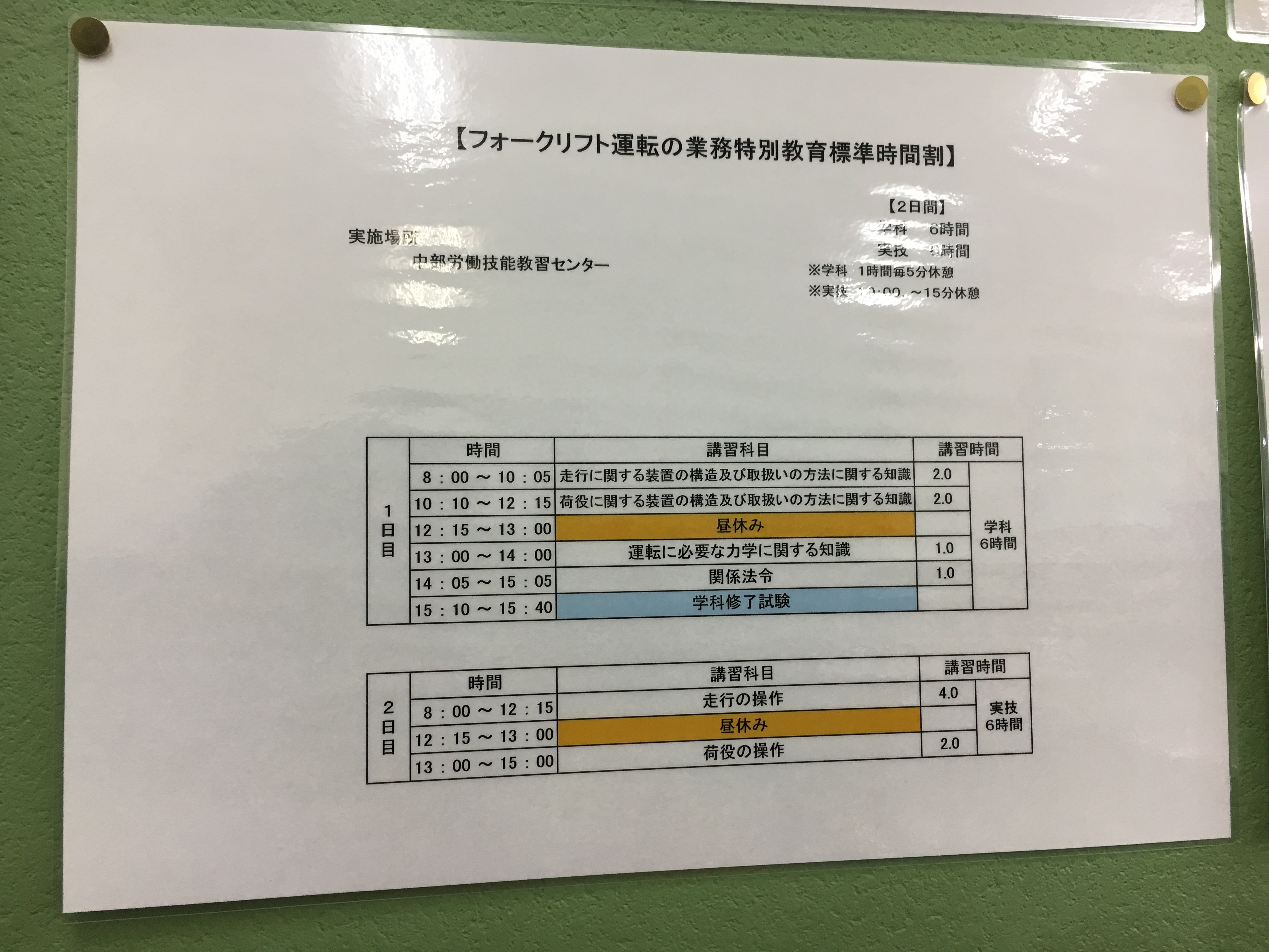 お昼休憩を1時間とりましたら、午後は2コマ学科講習を受けて1日目は解散となります。