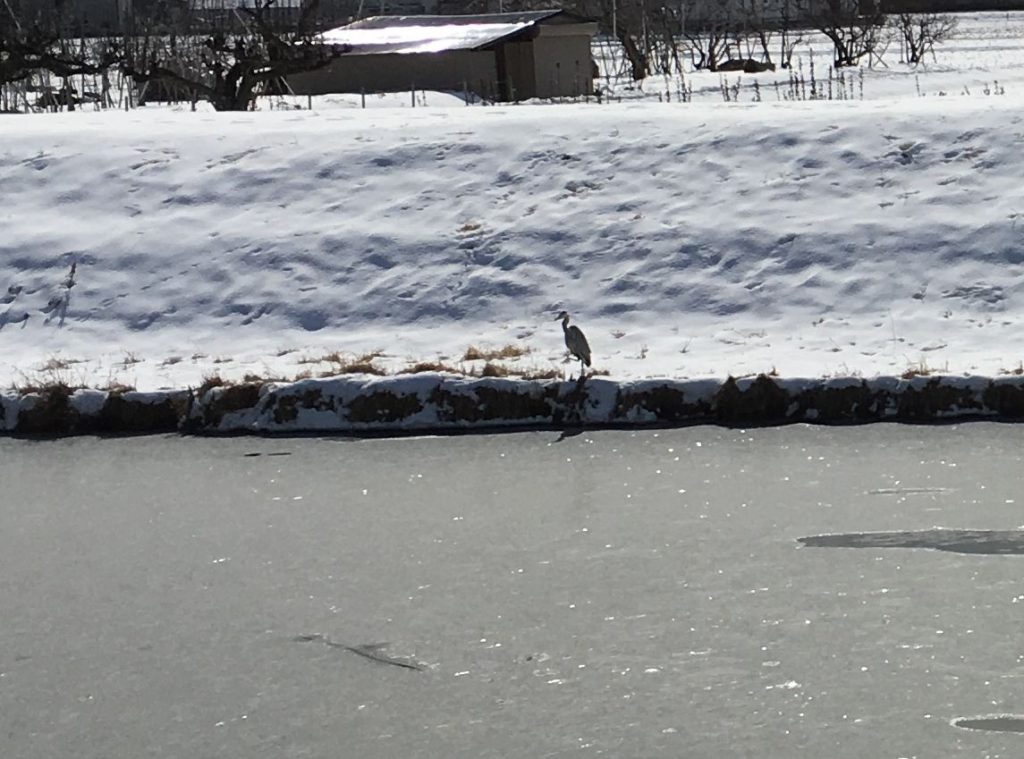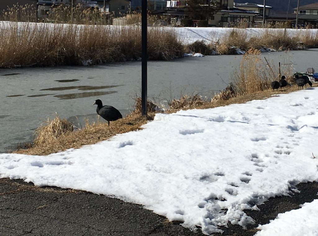 この時季の諏訪湖には、さまざまな鳥たちがやってきて、川辺や湖畔でくつろぐ姿をみることができます。