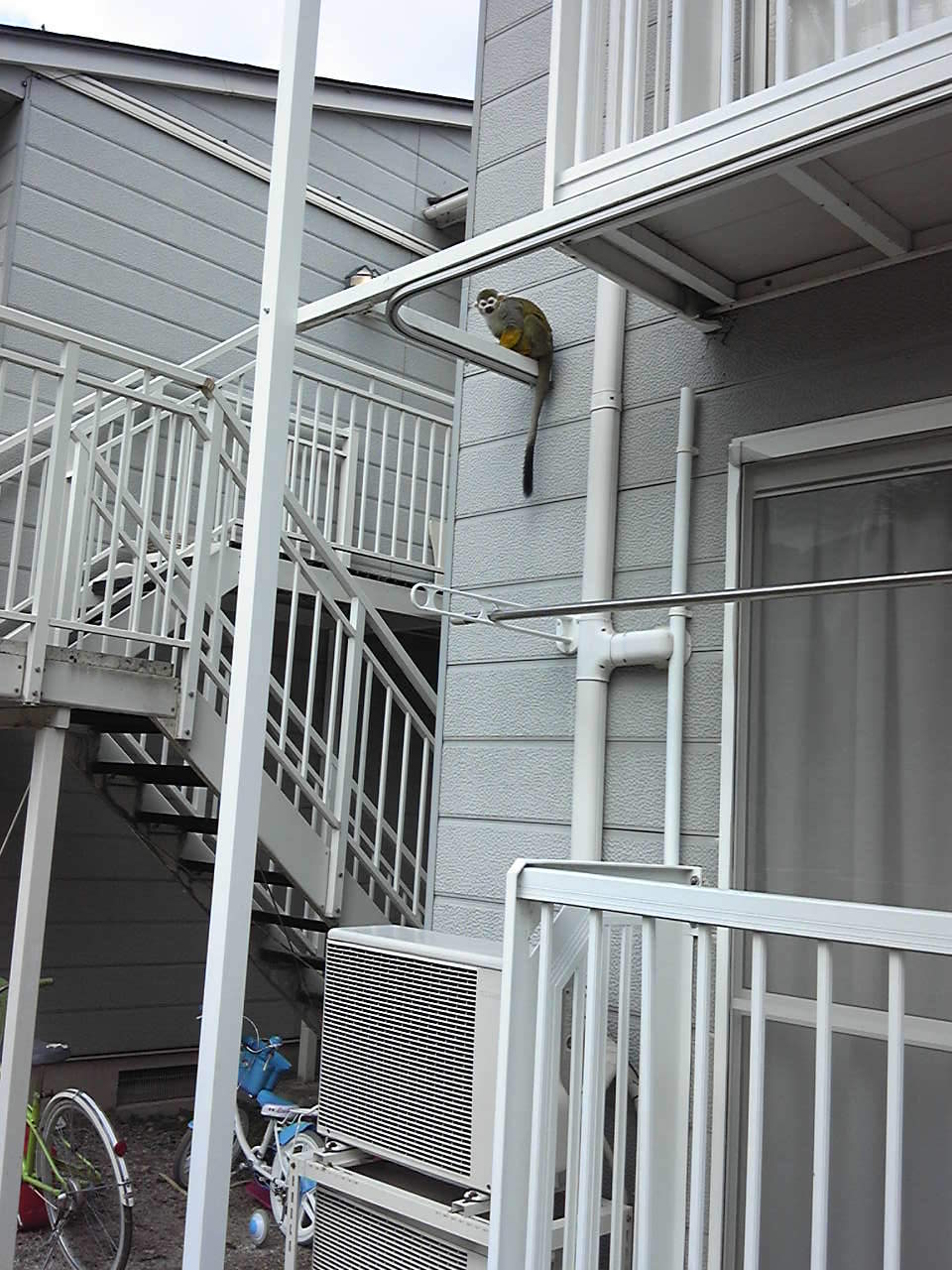 霊長類の一種だと思われますが、ペットなのか天然なのか・・・。まかせてグループのある地域では、ニホンザルに遭遇する事は結構あります。