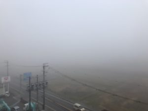 ましてやこの霧です。全国的には珍しい気象現象になってしまったそうですが、松本・安曇野ではこの時期は頻繁に発生します。キング原作の某ホラー映画のごとしです。