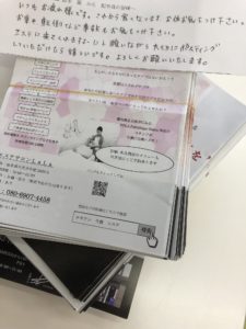 チラシと共にお客様の直筆メッセージを配布員さんにお届けしています