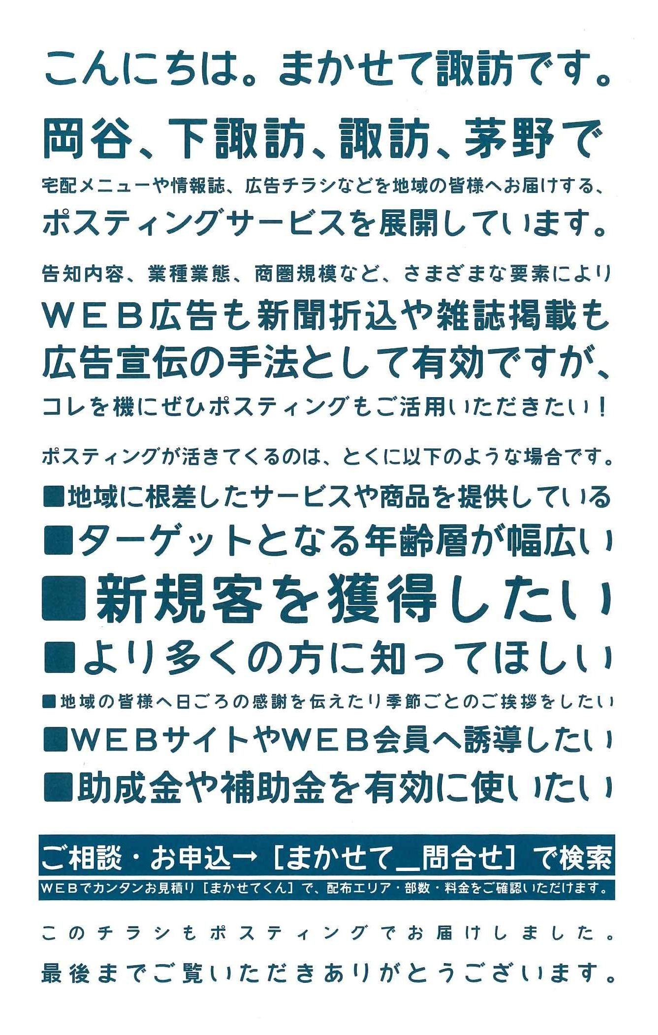 地元諏訪市のポスティング専門企業 まかせて諏訪