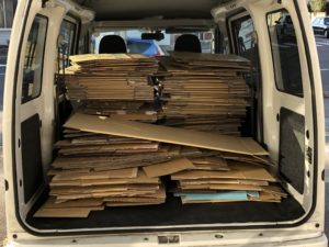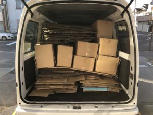 開いた段ボールを産廃業者さんにもっていく為、ハイゼットに詰め込みます。