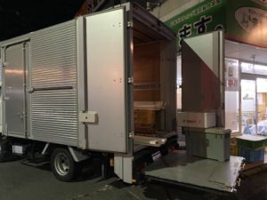 気が付けば外には木材を運んできたと思われるトラックが事務所の入り口に横付けされていました!