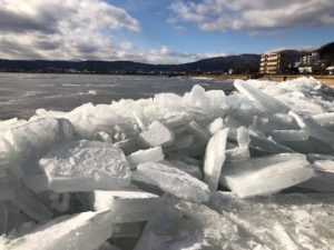 諏訪の人達は、連日の冷え込みに震えながらも4年ぶりの御神渡り出現を心待ちにしています。