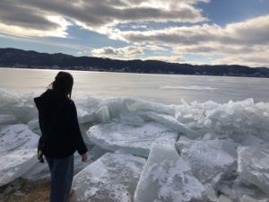 全面結氷した湖の割れた氷が、強い風で大量に岸に打ち上げられたものでした。厚さは20センチ前後あり、大きいものでは1メートルを優に超える大きさのものも!!ここまで大きなものは近年珍しいそうです。