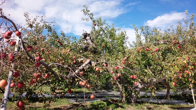 りんご農園を横目に、よだれをガマンしながら配布しました。柿も美味しそう・・・