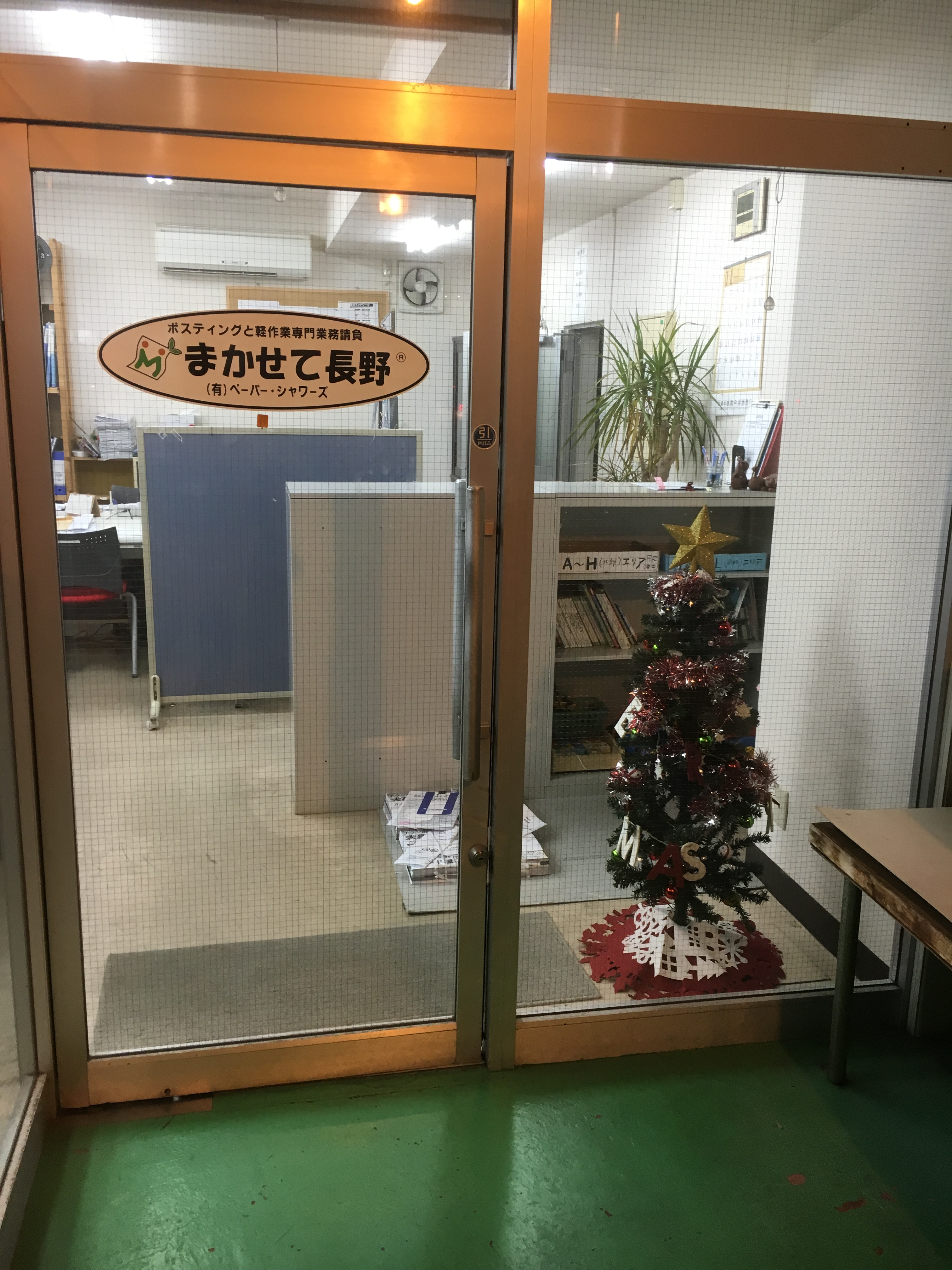 まかせて長野でも少しそのムードに浸りたく事務所入口にこんなものを置いてみました。
