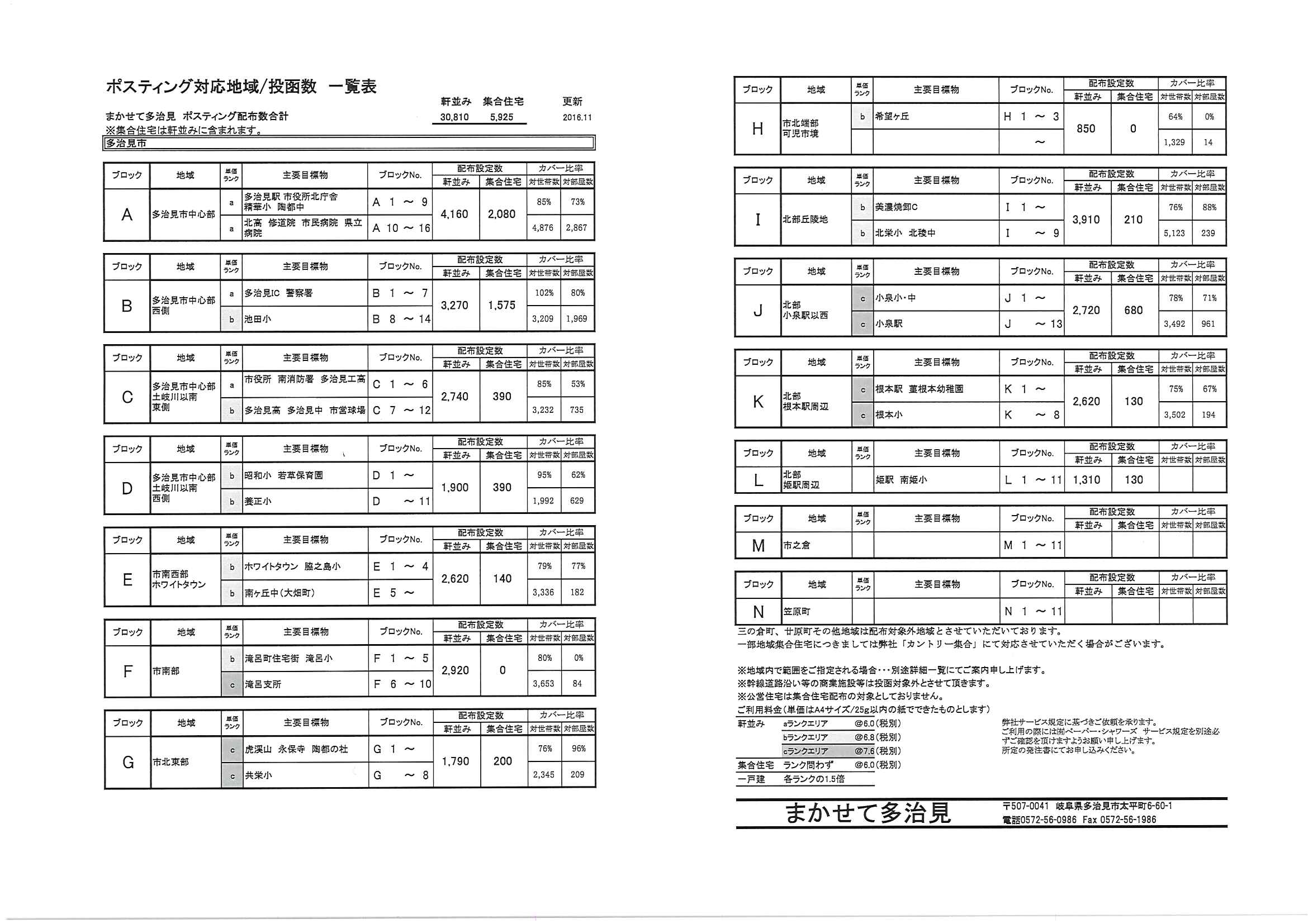 軒並みポスティングされる場合には多治見市内約3万世帯にポスティングいたします。