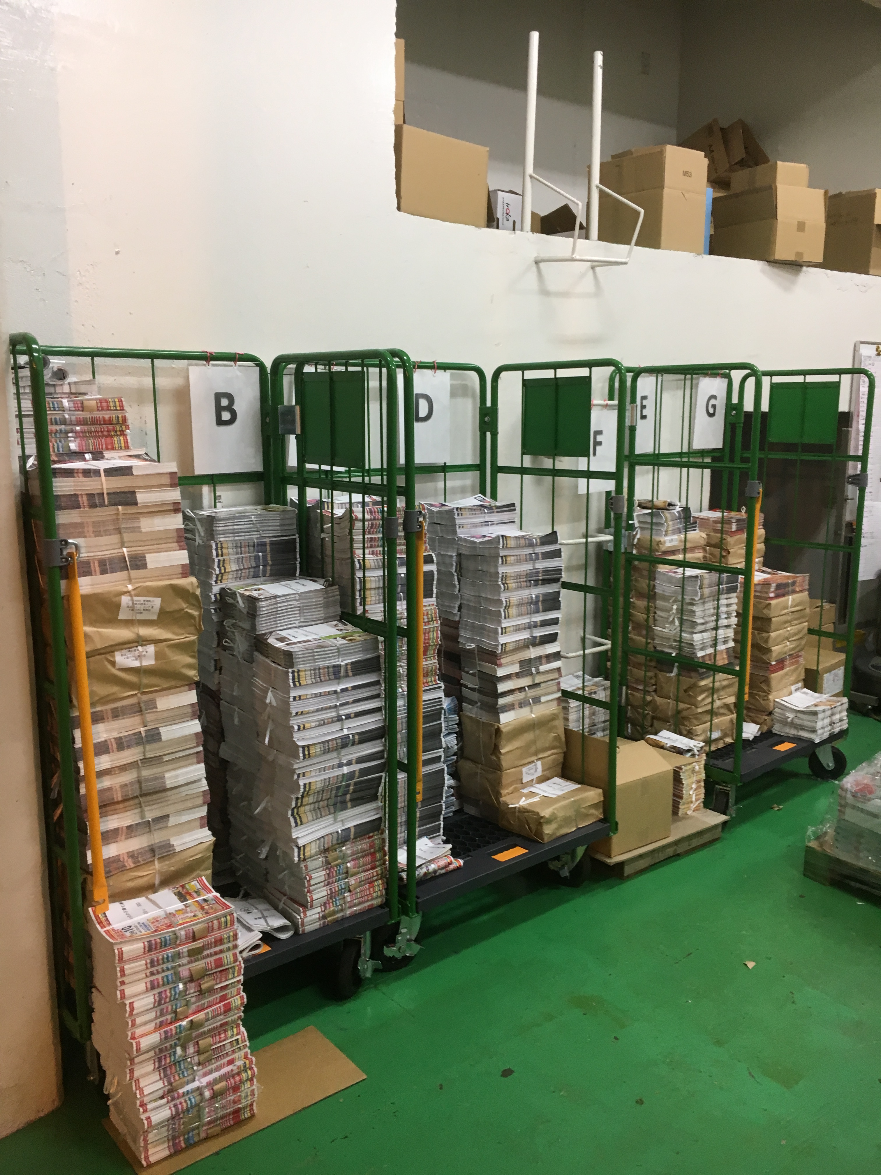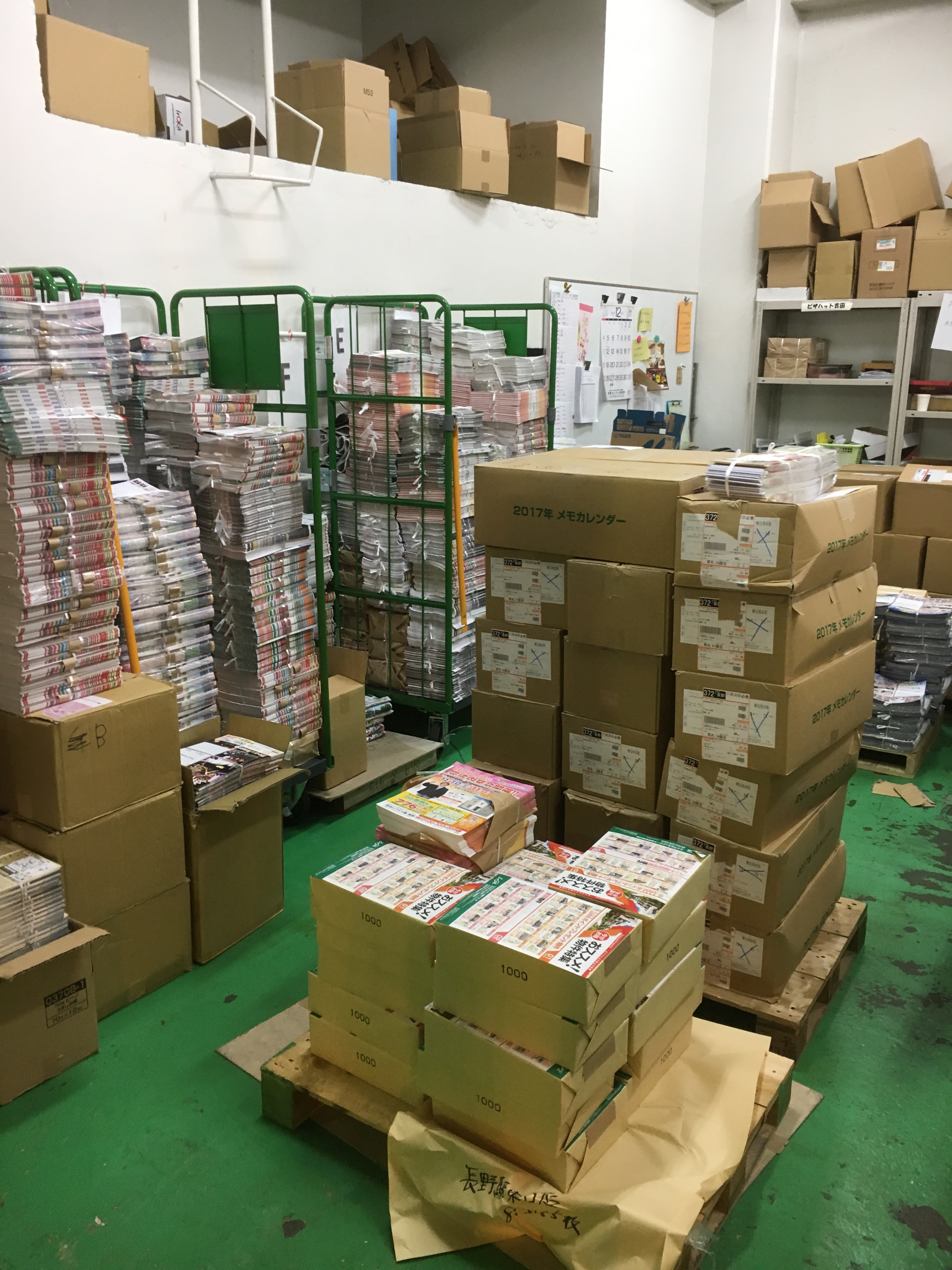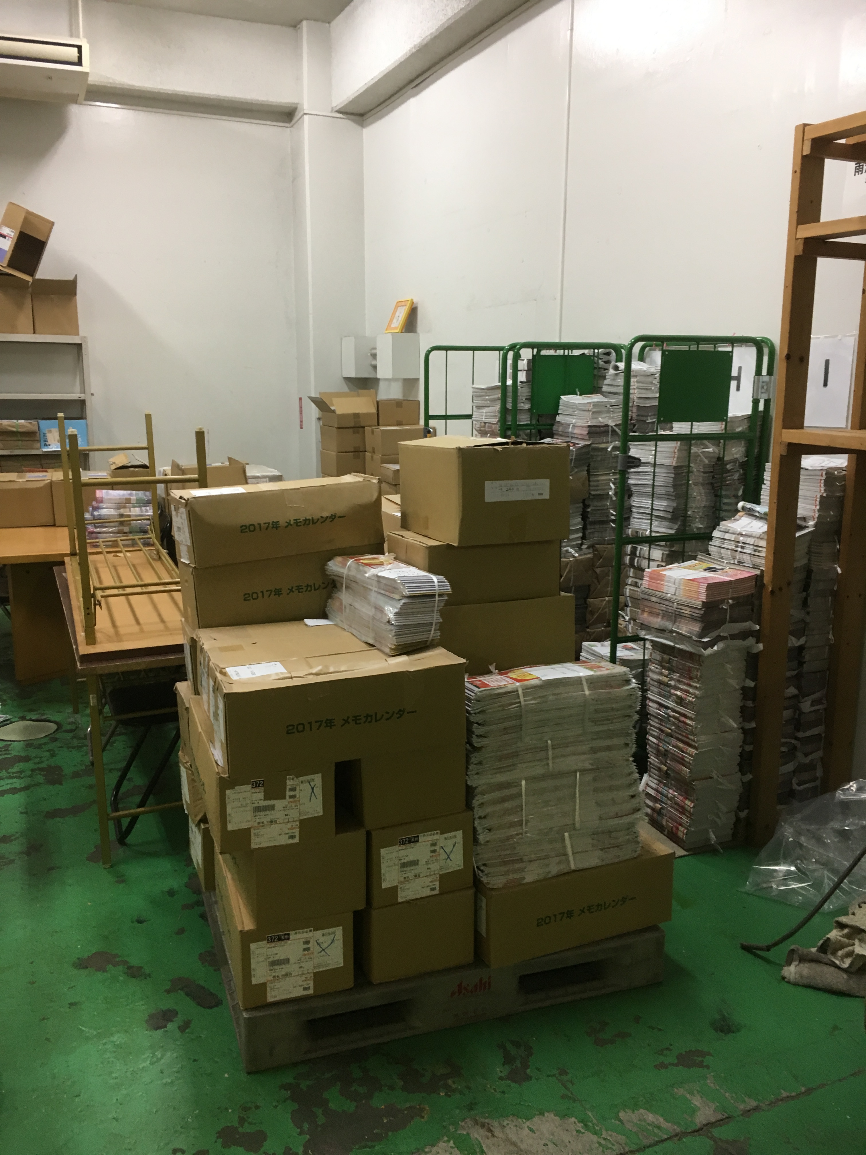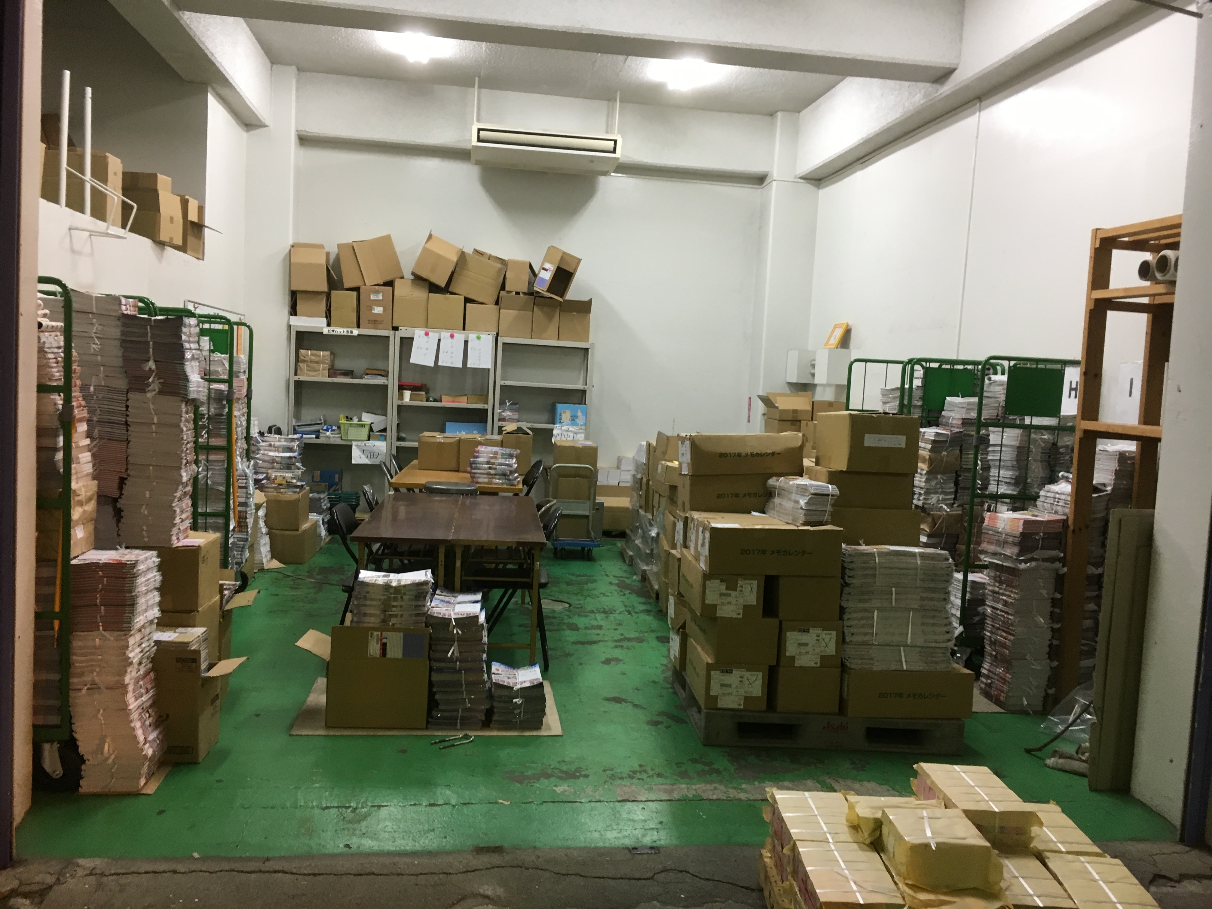 先週の金曜日までに入荷したチラシと倉庫の様子です。↓