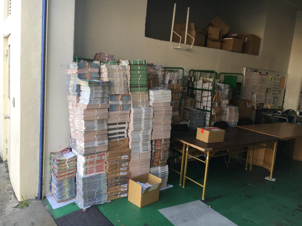 明日は火曜日。配布員の皆さまへ仕分けられたチラシをお渡しする日です。