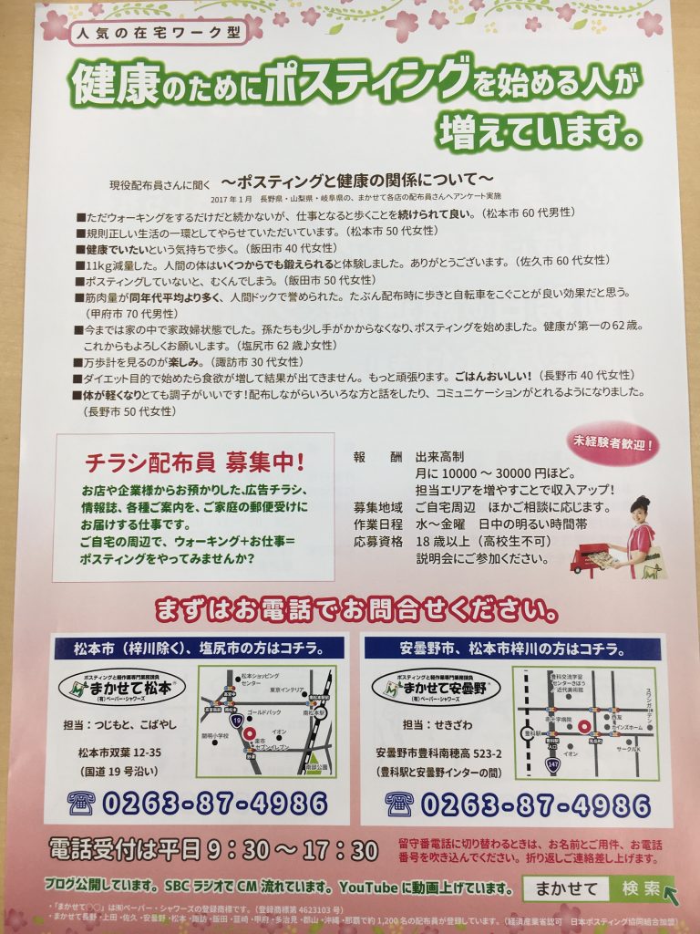 ↓今回はアルバイトの求人も一緒に配布します(上のチラシの裏に掲載)