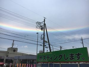 「彩雲」とよばれ、本来の虹とは上下逆さの向きで起こる特別な現象です。
