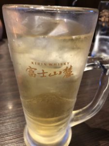 お次はホルモンを焼きながらハイボールへ移ります。上品なお味の富士山ハイボール、何杯でも飲めてしまいます。