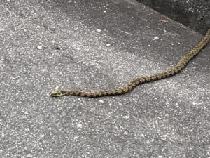 途中で、へびと猿に出会いました。歩いている人はいませんでした。鹿にも会いませんでした。
