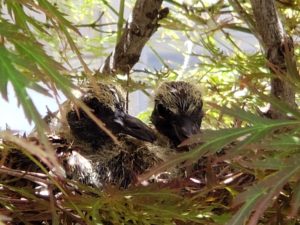 ツバメの雛は元気に鳴くのですが、鳩の雛はあまり声を出しません。