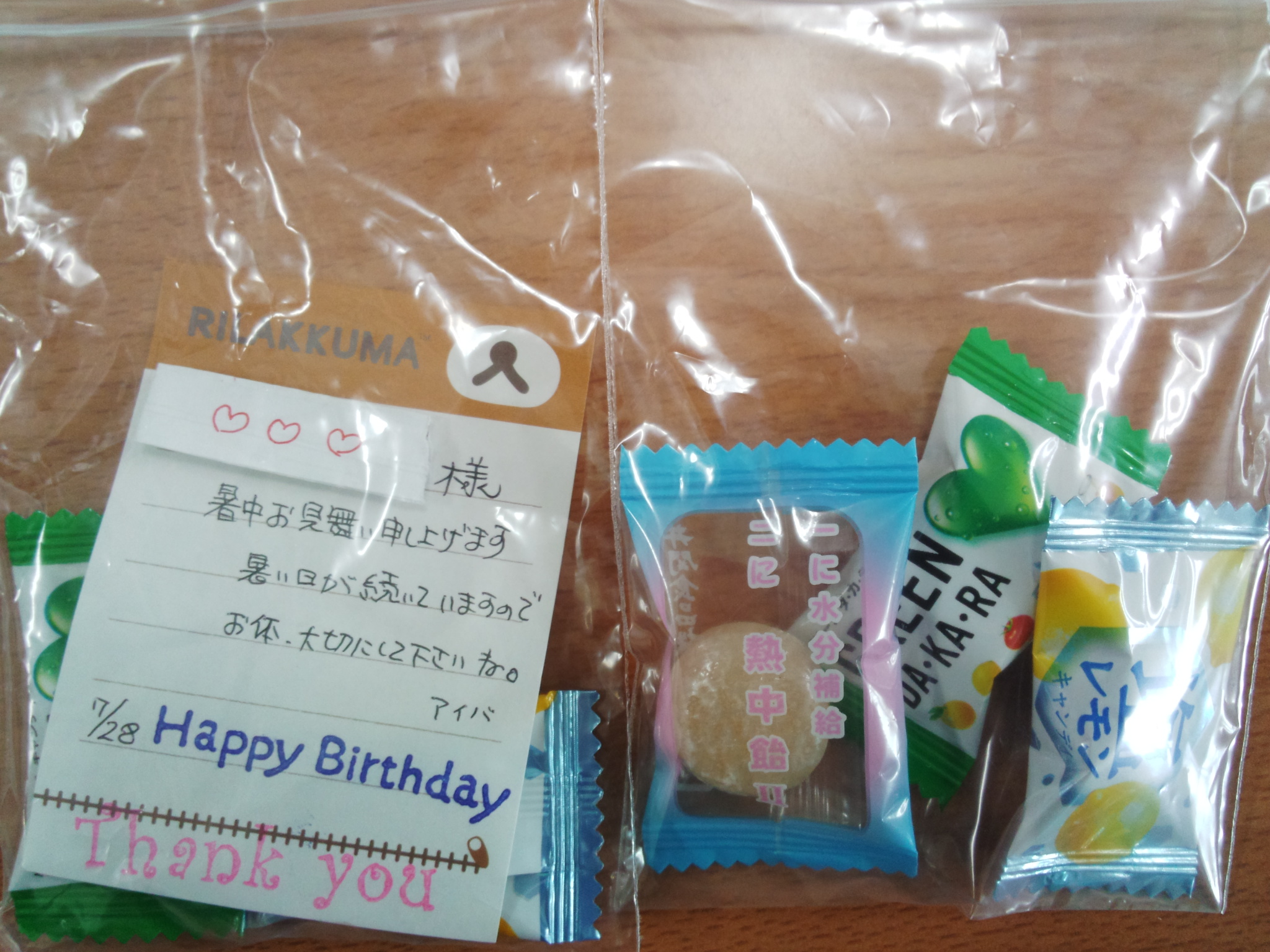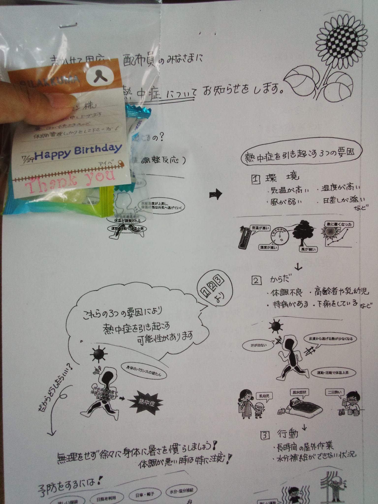 まかせて甲府の配布員さんに一言メモを手書きで作成し、熱中症予防のリストと飴を昨日荷物と一緒にお届けしました。