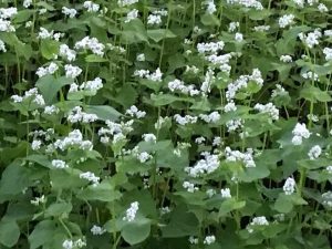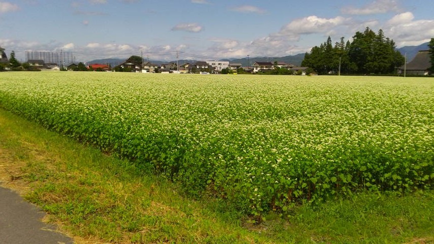 蕎麦の白い花が満開でした。花言葉は「一生懸命・誠実」だそうです。