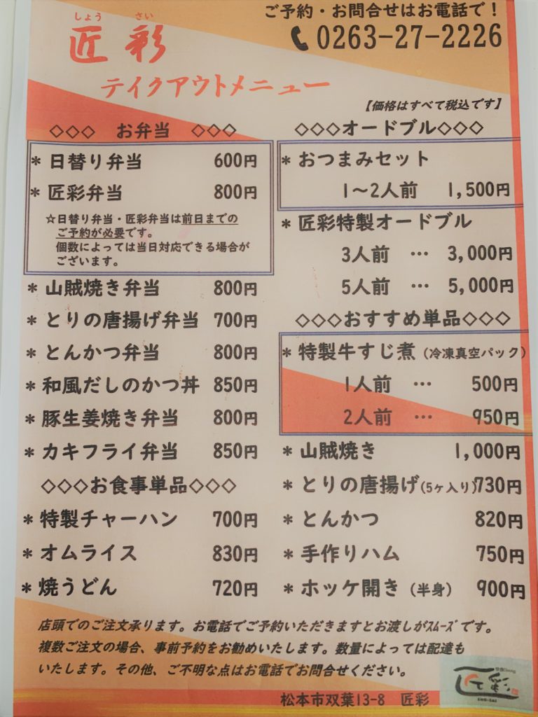 テイクアウトのチラシです!!