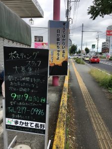 8月配属の新入社員Kくんが”まかせて長野”のA型看板を刷新してくれました!