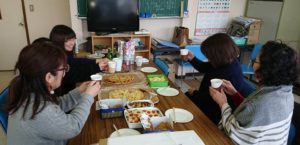 12月25日に軽作業や配布員さんたちとお昼の時間に