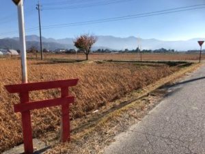 この手作りの鳥居が立つ田んぼが何ヶ所かあります