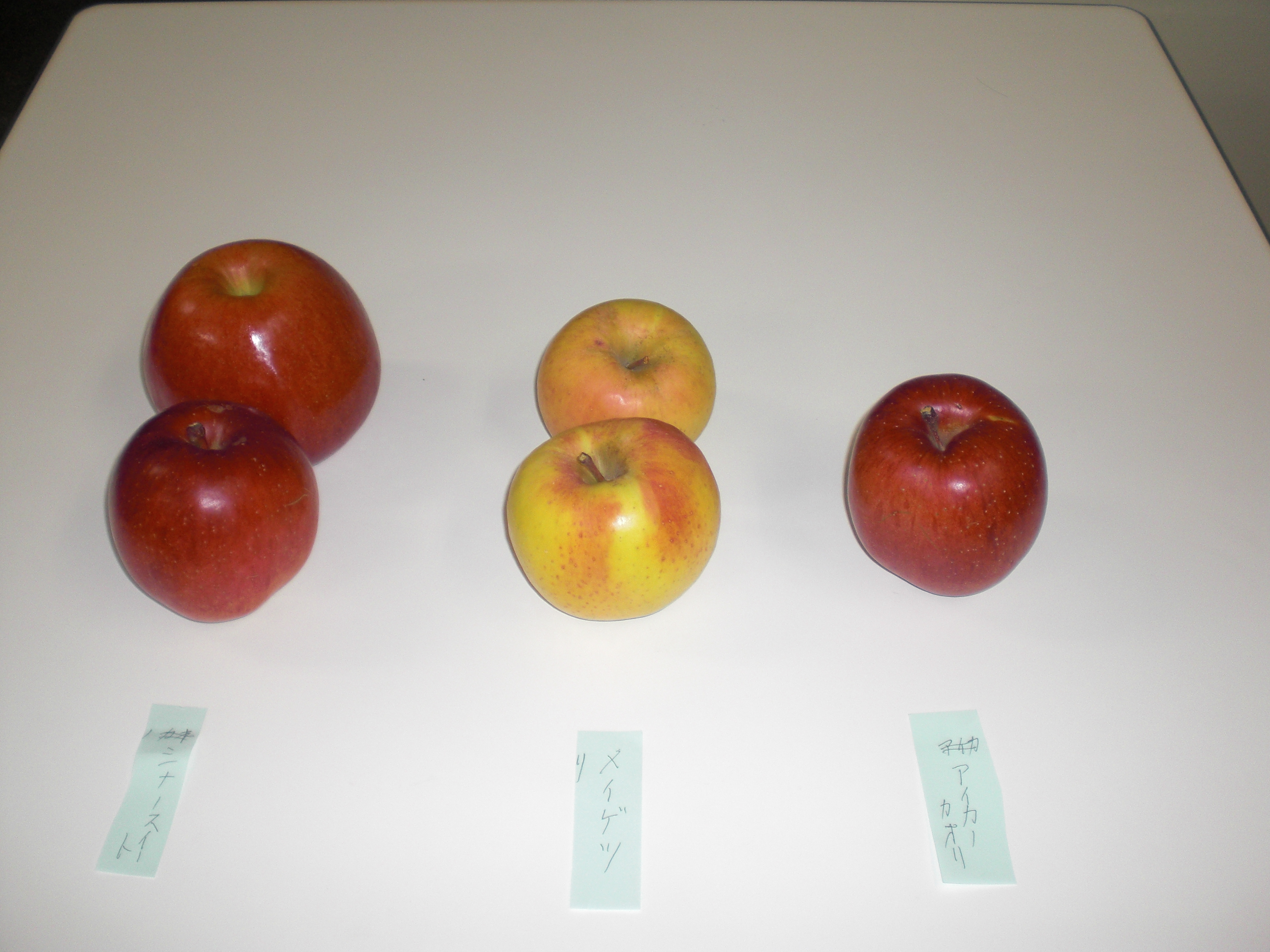 左から、シナノスイート、メイゲツ、アイカノカオリ