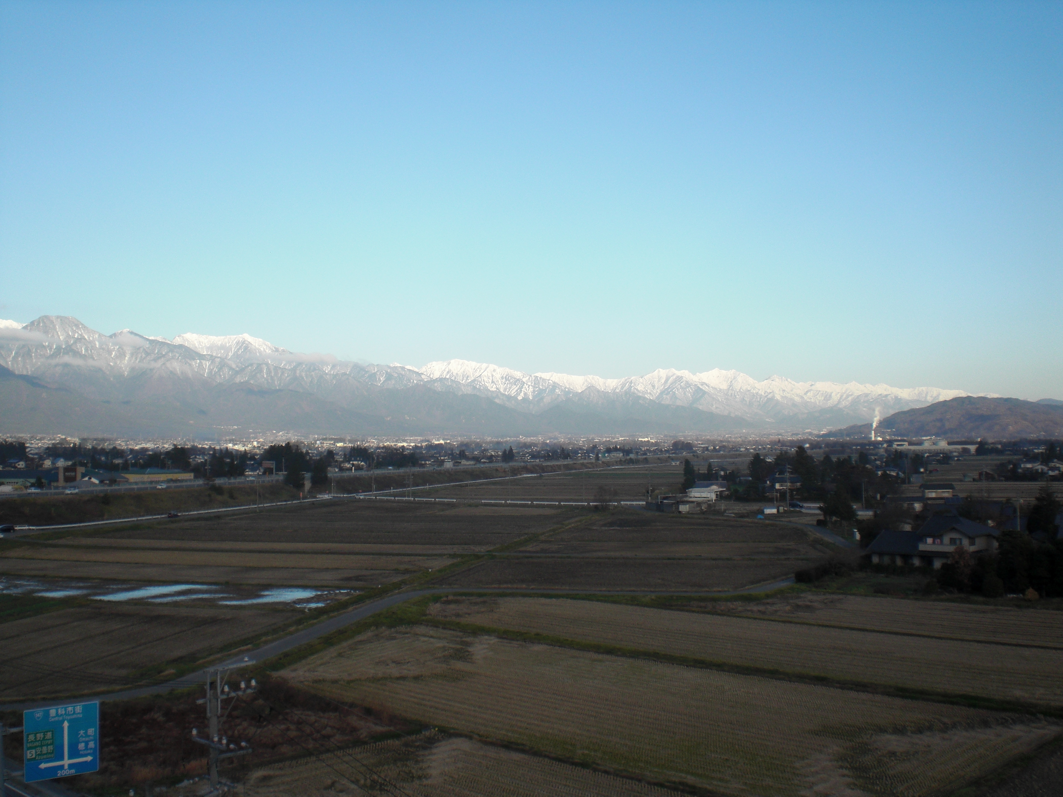 三郷方面へ車を走らせると、小倉の方の山沿いは雪に覆われています。