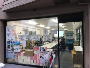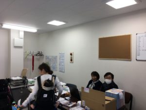 チラシが所狭しと並べられており、また、配布員募集のポスターが貼られていたりで、ポスティング会社に来たと安心する光景でございます。