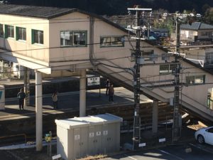 トンネル内には、住宅街と四方津駅を結ぶ、これまた長いエスカレーターとケーブルカーが通り、駅利用者が楽に行き来できるようになっています。