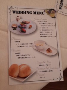 さすが、結婚式場の食事とあって、豪華絢爛。味は勿論のこと、視覚や嗅覚でも楽しませて頂きます。