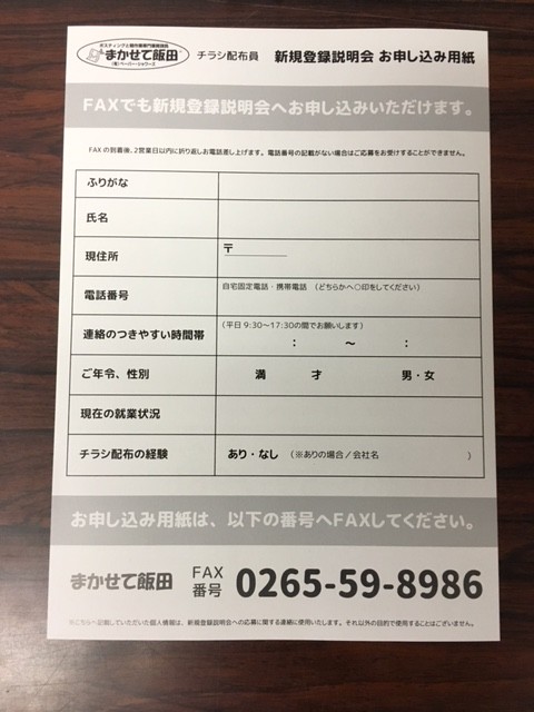 まかせて飯田の配布員さん応募お待ちしておりま~す(*^^)v