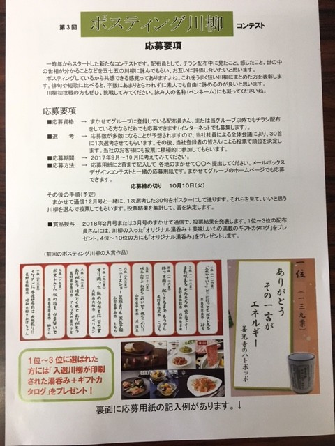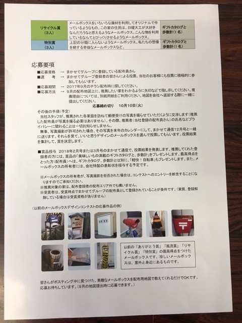 まかせてでは、ポスティング川柳コンテスト、メールボックスコンテストを行っております。