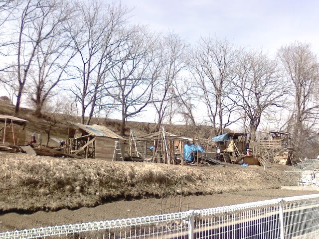 ハウスメーカー様のチラシを、集合住宅のドアノブにかけるという特殊な配り方をしました。配っていたら、子供たちのはしゃいでる声がしたので見てみると、小学生らしき一団と、先生らしき人がなにやら廃材で、小屋とかウッドデッキのようなものを作っています。