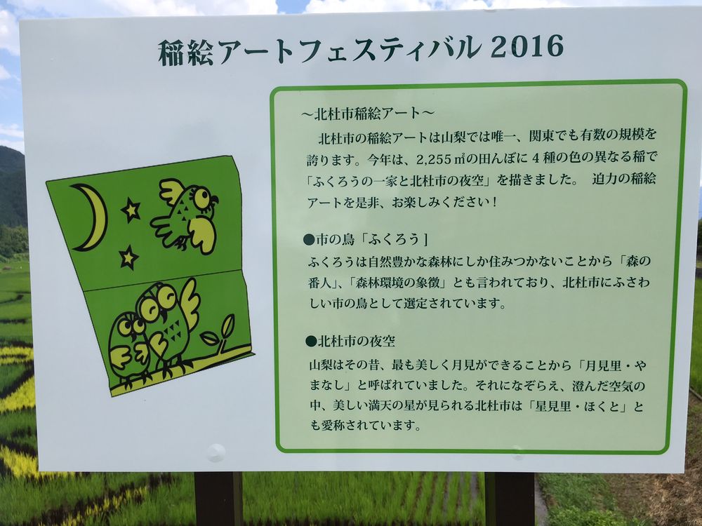北杜市の集合住宅を配布中、「稲絵アート」の文字を発見。ちょっと立ち寄ってみました。