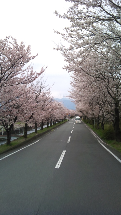 写真は、ぜんぜん予期しなかった一般道に咲き誇るサクラ。