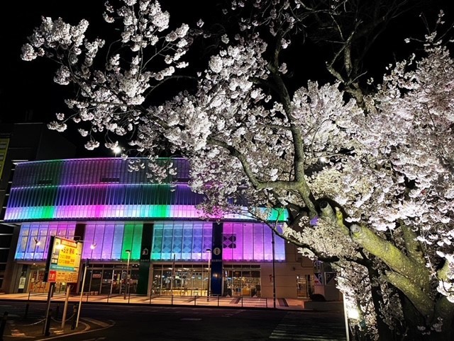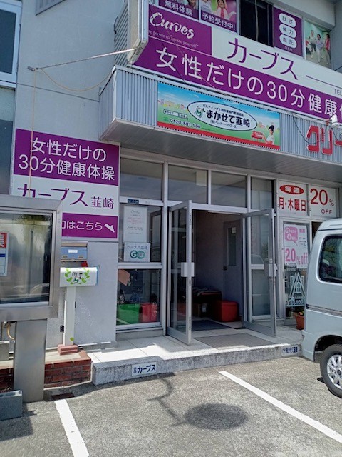 建物を ぐるりと回り込めば、まかせて韮崎の正面出入口があります。
