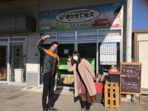 今日は、まかせて長野から営業の村松主任と、まかせて上田から営業の中村さんが来てくれました!! チラシの搬入と佐久地域で営業をしてくださったのです。