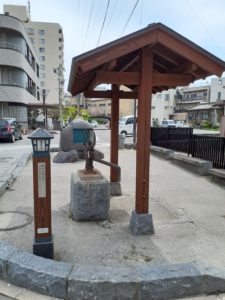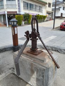 ★上社は八ヶ岳山麓の麓の綱置き場から茅野市安国寺の御柱屋敷まで2本づつ合計8本の柱を運びました。途中、本来川越しが行われる宮川橋上では、宮川の水をくみ上げ、お清めの放水を行っていました。