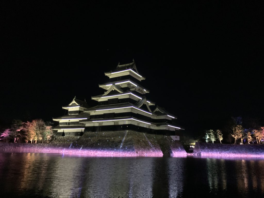 昼間とは違った表情の松本城が見られますね。