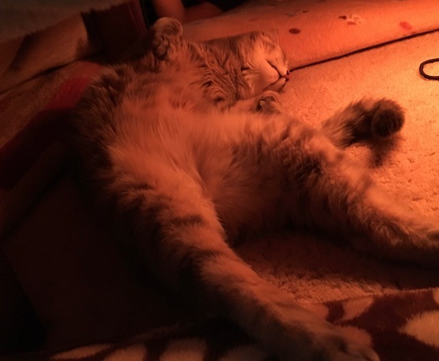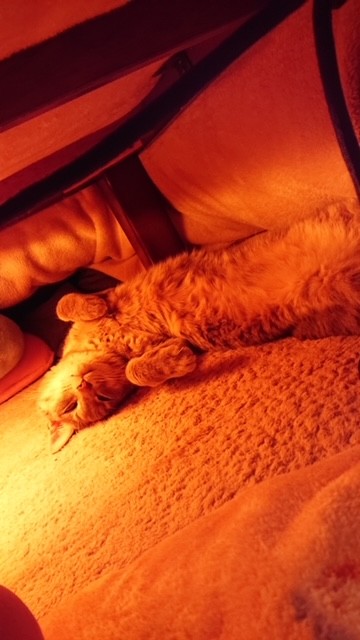 我が家の猫は童謡の歌詞のように、こたつの中で丸くなるどころか大の字で寝そべっています。