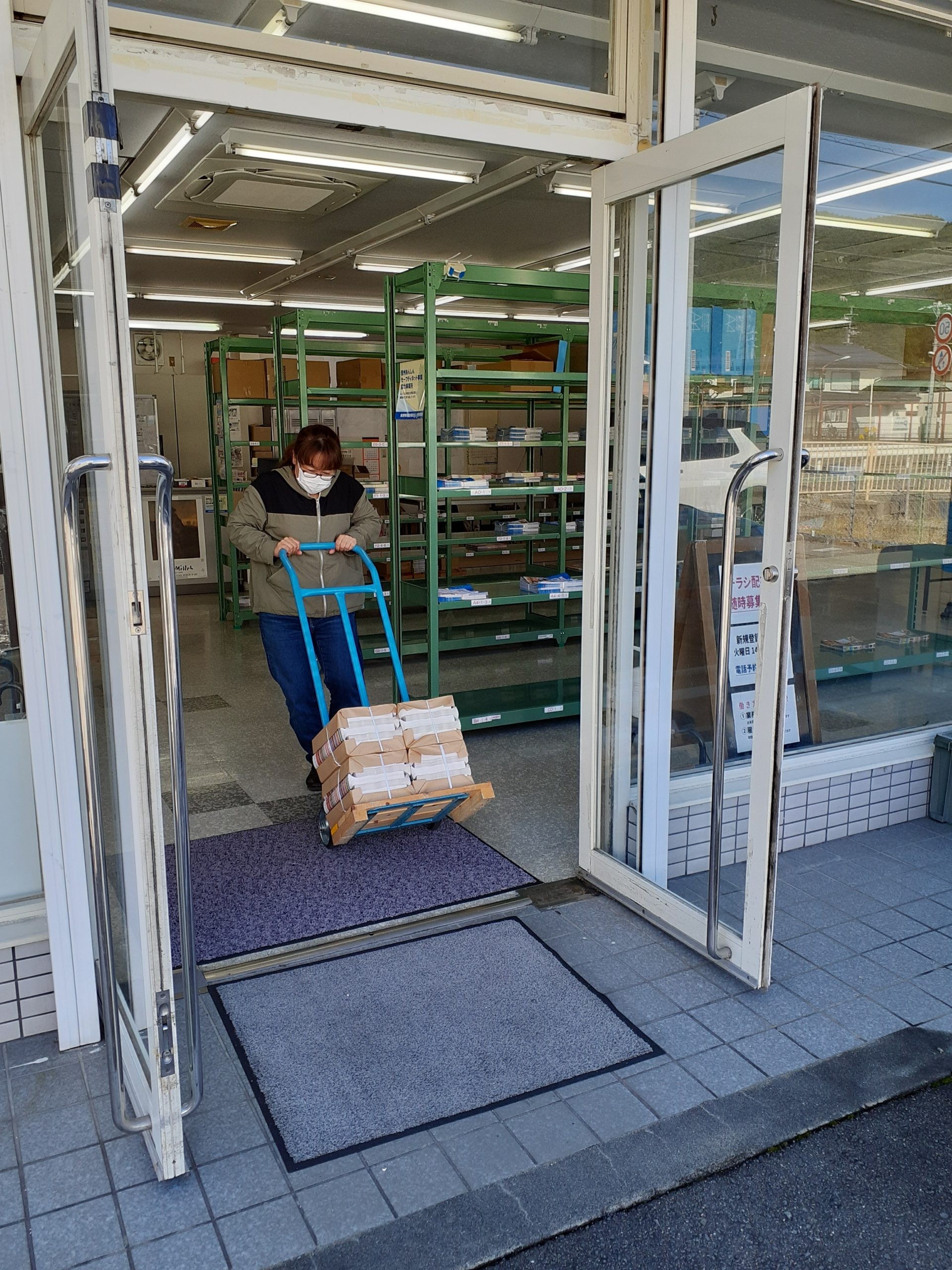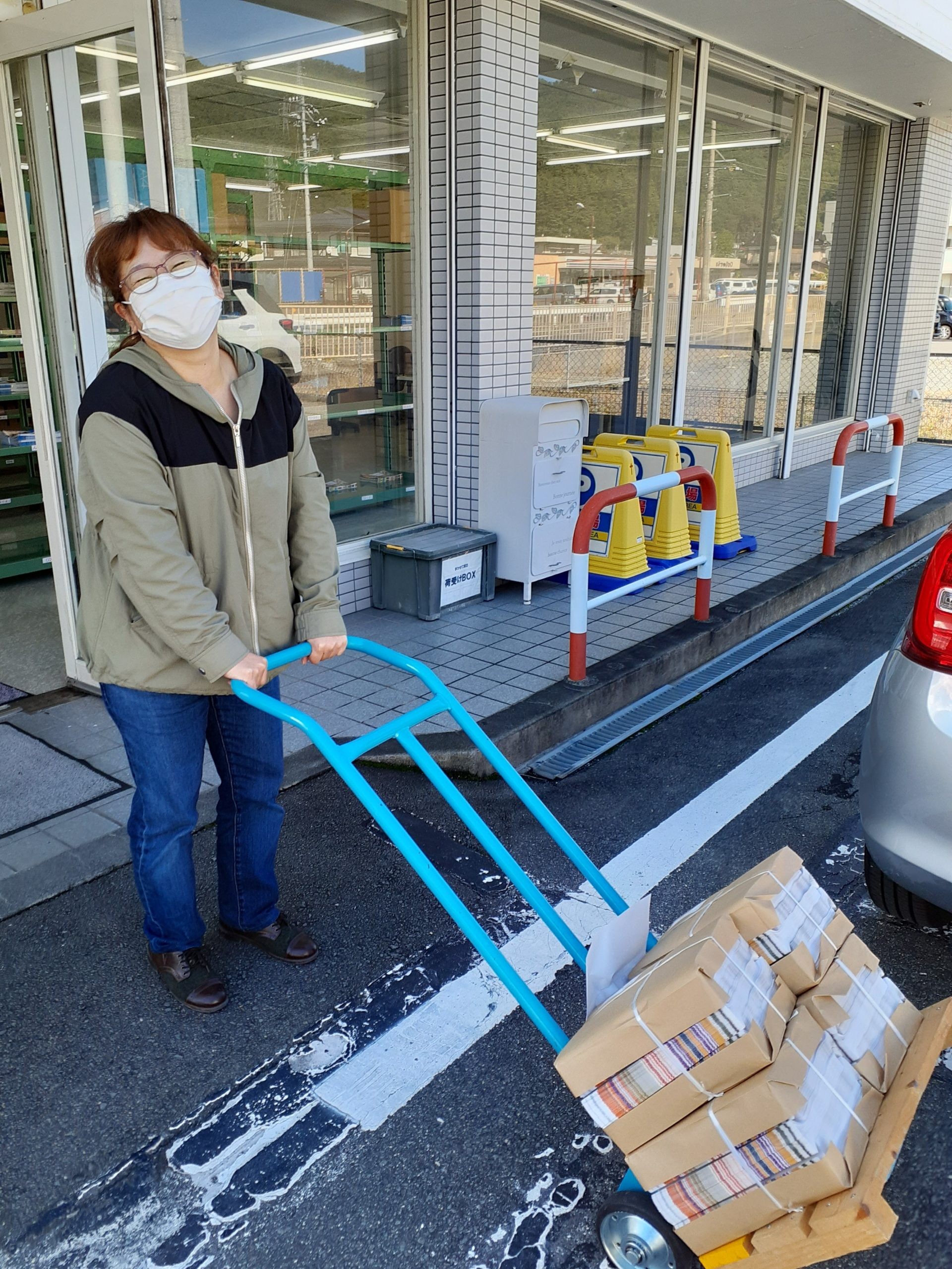 「まかせて松本には、フォークリフトがあるので荷下ろしも楽だと思いますよ~。ここは手運びでお手数かけてすみません。」