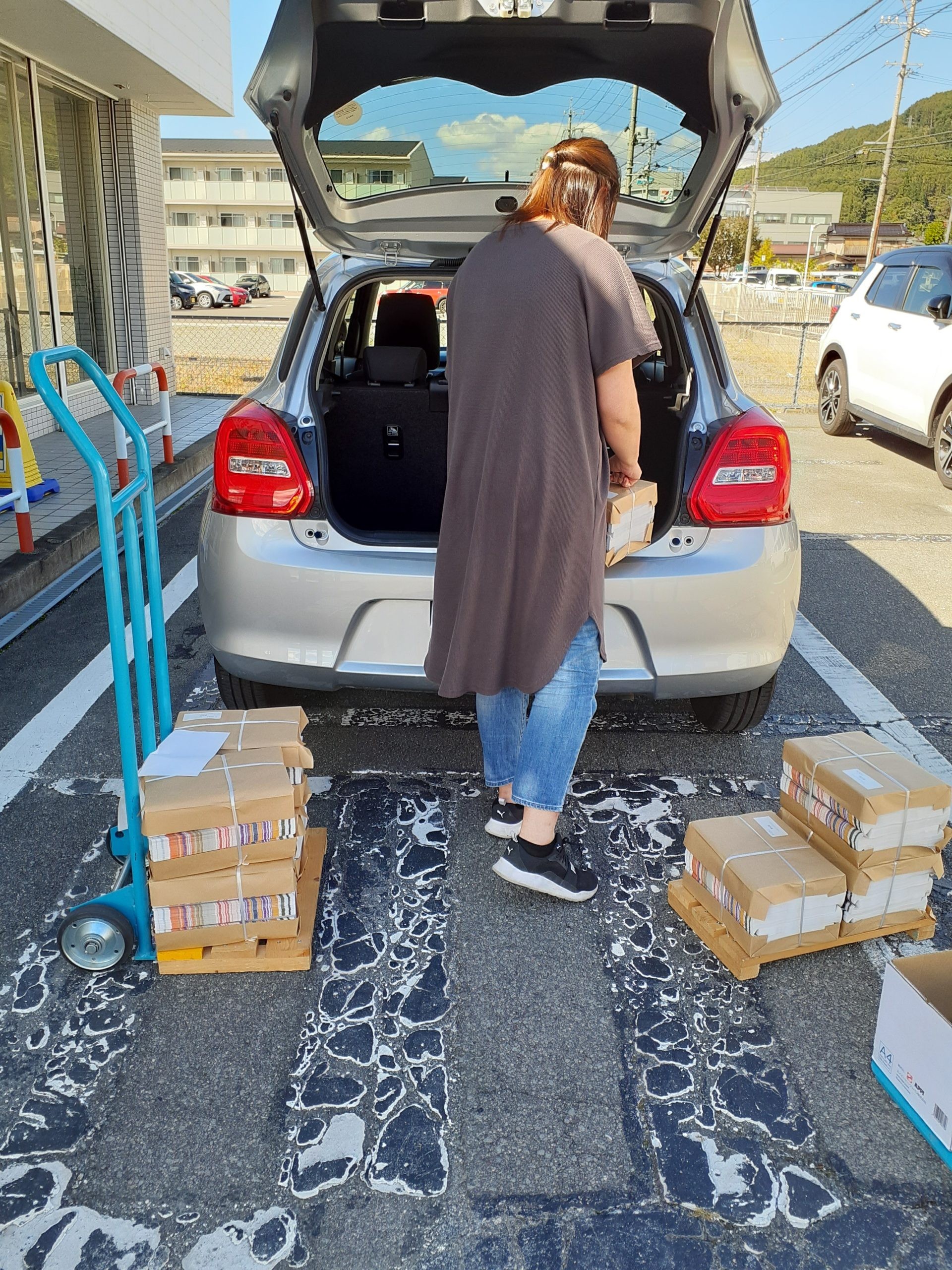 お手伝いしてくださった、まかせて諏訪手配師の Iさんはさすが慣れてる。チャチャっと済ませて車に積み込んでくれてます。さすがですわ